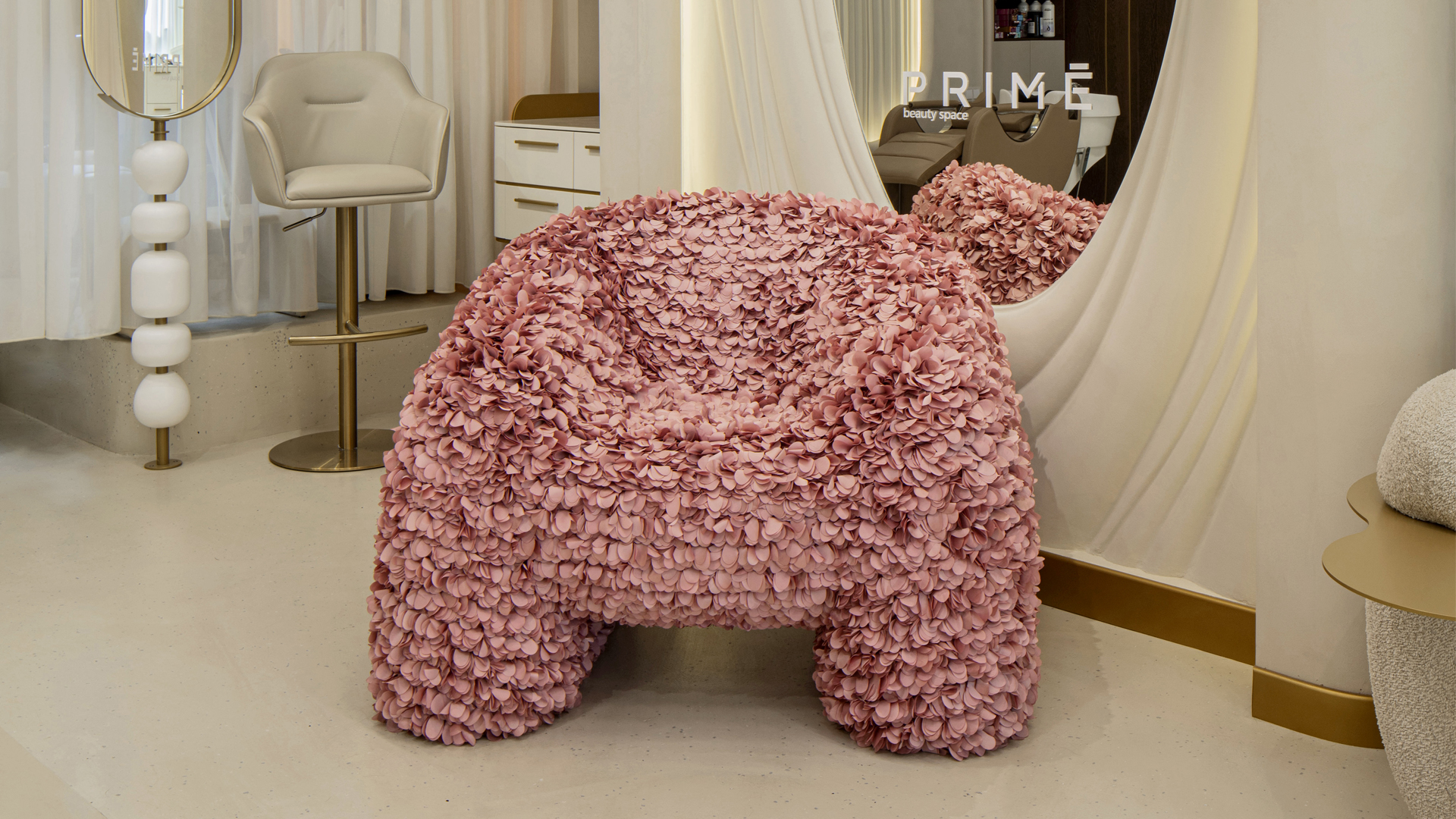 В «сердце» композиции - кресло Hortensia розового цвета, созданное Андресом Райзингером и Хулией Эске. Его образ навеян красотой цветущей гортензии. Мягкие, объемные линии обивки выполнены из более чем 30 000 лазерно вырезанных лепестков, что создаёт идеальный баланс уюта и визуального очарования.